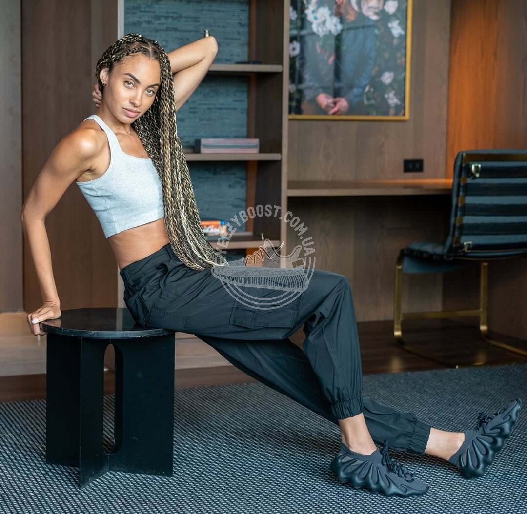 Adidas Yeezy 450 «Dark Slate» були розроблені в рамках колаборації Adidas x Yeezy. Реліз кольору відбувся 25 червня 2021 року, а ресток 24 червня 2024 року. Модель вперше з’явилася на Кан’є Весті під час показу Yeezy Season 8 на паризькому тижні моди у 2020 році. Yeezy 450 абсолютно нова модель, яка не схожа зовнішнім виглядом на своїх попередників. Кросівки зшиті з легкої тканини за технологією Primeknit, а інноваційна проміжна підошва у вигляді іклів з м’якого поліуретану (EVA), який забезпечує повернення енергії після кожного кроку та легкість у русі. Завершальним елементом у дизайні кросівок виступає оригінальна шнурівка, виконана у вигляді петель. Брендинг обмежений логотипом Adidas Performance на підошві. Кросівки Yeezy 450 – революційний підхід до сучасного дизайну взуття від команди Adidas та Kanye West.