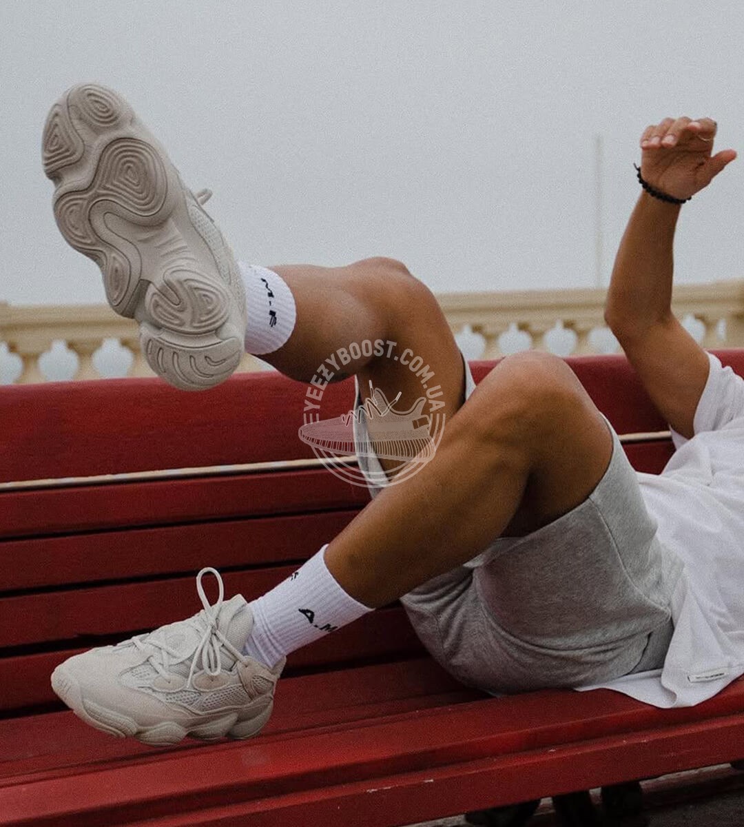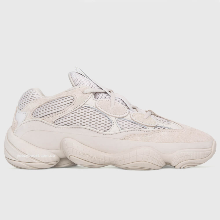 Adidas Yeezy 500 «Blush» були розроблені в рамках колаборації Adidas x Yeezy. Реліз кольору відбувся 16 лютого 2018 року, а також два рестоки – 19.02.2022 року та 03.06.2024 року. Верх Yeezy «Blush» зшитий з преміальної замші та сітки mesh, а в підошві прихована амортизаційна технологія adiPRENE+. Кросівки Yeezy 500 оснащені устілкою Ortholite з ефектом пам’яті та чіпкою підошвою, яка забезпечує високий рівень комфорту і не залишає слідів на поверхні. Рефлективне напилення нанесено на язичок і елементи шнурівки. Брендинг обмежений логотипом Adidas Performance на носку кросівок. У цій лінійці бренду Каньє Веста втілюється гармонійне поєднання ретро-стилю в сучасному виконанні. Кросівки Yeezy 500 по праву вважаються справжньою класикою бренду.