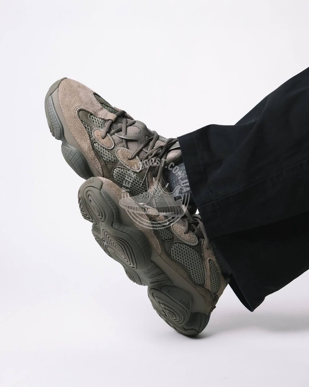 Adidas Yeezy 500 «Clay Brown» були розроблені в рамках колаборації Adidas x Yeezy. Реліз кольору відбувся 30 жовтня 2021 року, а ресток 05 серпня 2024 року. Верх кросівок Yeezy «Clay Brown» виготовлений з преміальної замші та сітки mesh, а в підошві прихована амортизаційна технологія adiPRENE+. Кросівки Yeezy 500 оснащені пінною устілкою Ortholite з ефектом пам’яті та чіпкою підошвою, яка забезпечує високий рівень комфорту та не залишає слідів на поверхні. Рефлективне напилення нанесено на язичок та елементи шнурівки. Брендинг обмежений логотипом Adidas Performance на носку кросівок. У цій лінійці бренду Каньє Веста втілюється поєднання ретро-стилю в сучасному виконанні. Кросівки Yeezy 500 по праву вважаються справжньою класикою бренду.