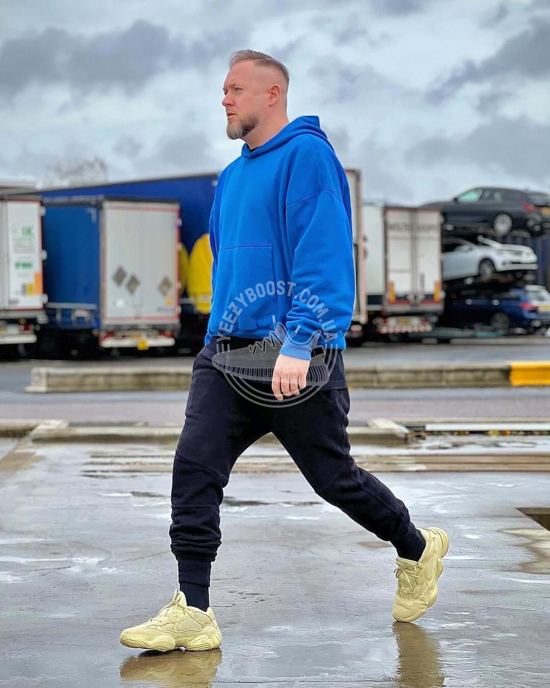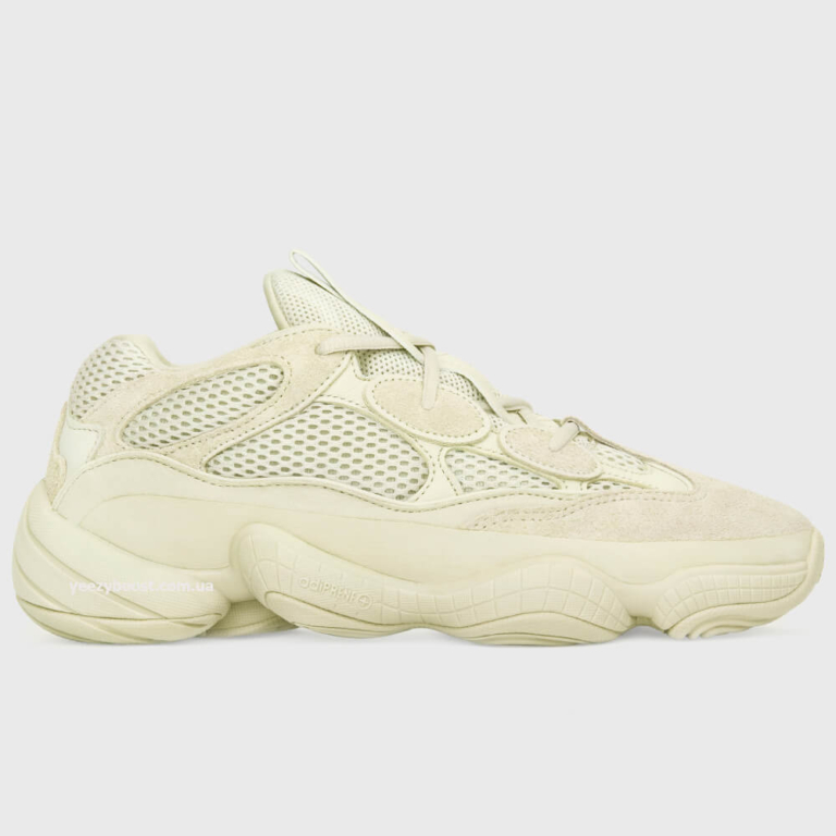 Adidas Yeezy 500 «Super Moon Yellow» були розроблені в рамках колаборації Adidas x Yeezy. Реліз відбувся 9 червня 2018 року, а ресток 27.05.2024 року. Верх кросівок Yeezy «Super Moon Yellow» виготовлений з mesh сітки та замші, а в підошві прихована амортизаційна технологія adiPRENE+. Кросівки Yeezy 500 оснащені пінною устілкою Ortholite з ефектом пам’яті та чіпкою підошвою, яка забезпечує високий рівень комфорту і не залишає слідів на поверхні. Світловідбивне напилення нанесено на язичок і елементи шнурівки. Брендинг обмежений логотипом Adidas Performance на носку кросівок. У цій лінійці бренду Каньє Веста втілюється гармонійне поєднання ретро-стилю в сучасному виконанні. Кросівки Yeezy 500 по праву вважаються справжньою класикою бренду.