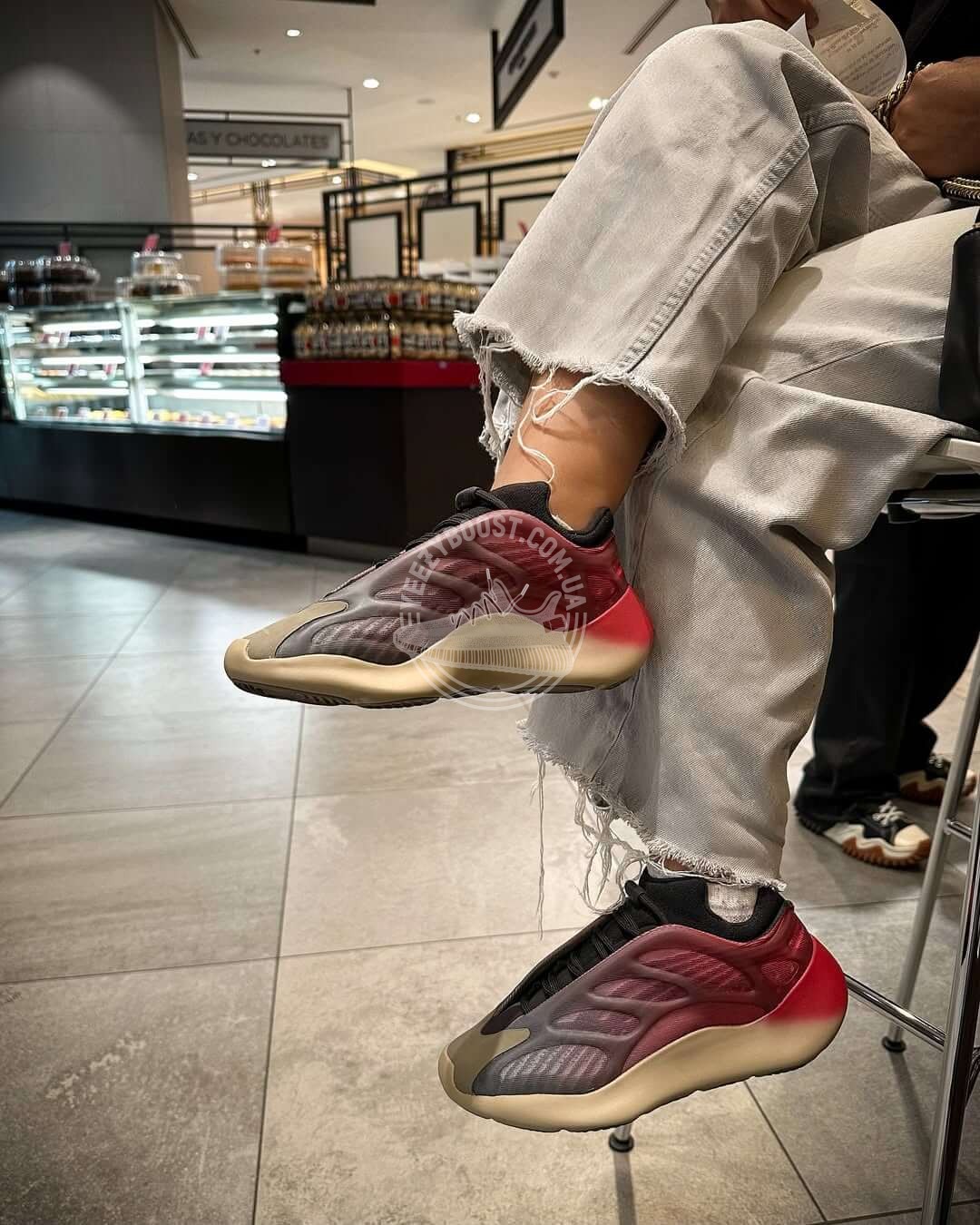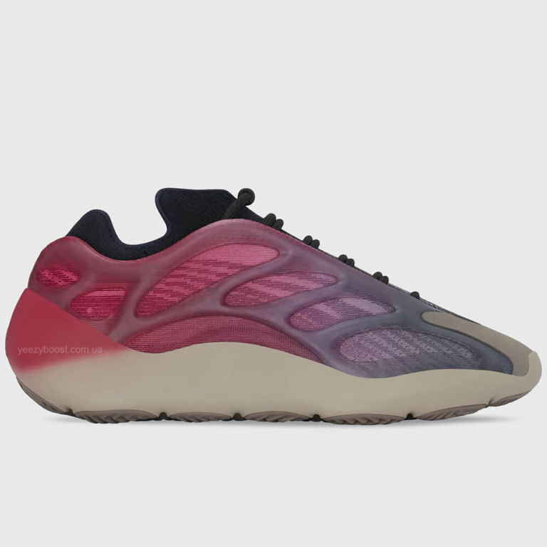 Adidas Yeezy 700 V3 “Fade Carbon” – новий колір популярних 700-х у третій версії. Реліз відбувся 21 травня 2022 року і відрізняється від попередників своїм футуристичним дизайном та відсутністю амортизаційної системи Boost у підошві. Верх виготовлений з Primeknit, обрамленого в фігурну клітку з поліуретану, яка світиться в темряві у формі крил ангела. Чорний нейлоновий язичок прихований під новою системою шнурівки, петлі якої заховані під боковими панелями. Конструкція забезпечує щільне прилягання і фіксацію стопи. Шнурівка доповнюється рефлективними деталями біля основи. Проміжна підошва EVA відповідає за комфорт і довговічність, тоді як гумова підметка покращує зчеплення з поверхнею. Yeezy 700 V3 “Fade Carbon” оснащені устілками Ortholite з ефектом пам’яті.