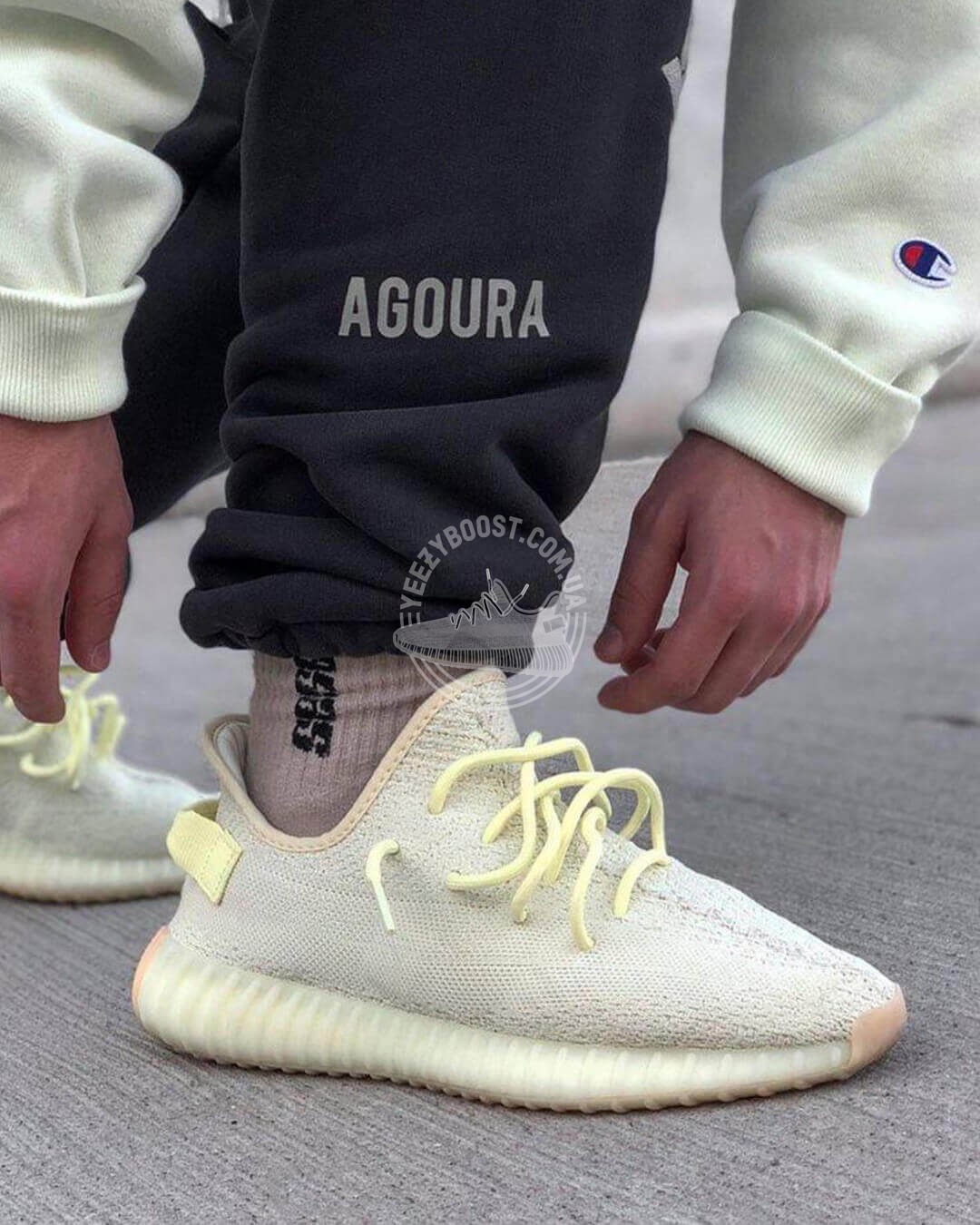 Adidas Yeezy Boost 350 V2 «Butter» – дванадцятий колір в рамках колаборації Adidas x Yeezy в лінійці «SPLY-350», реліз якого відбувся 30 червня 2018 року. Кросівки пошиті з легкої тканини світло-жовтого відтінку за технологією Primeknit і прикрашені боковою смужкою, на якій ледь помітний напис «SPLY-350». Як дизайнерська шнурівка, так і петелька для зручності взування трохи насиченіші за кольором, що надає контрастності цій парі. На внутрішній частині задника розміщені рефлективні брендові три смужки Adidas. Напівпрозора підошва приховує всередині амортизацію Boost, яка досі залишається однією з найефективніших в індустрії взуття. Кросівки Yeezy Boost 350 – це неймовірна легкість, відчутний комфорт та максимальна амортизація.