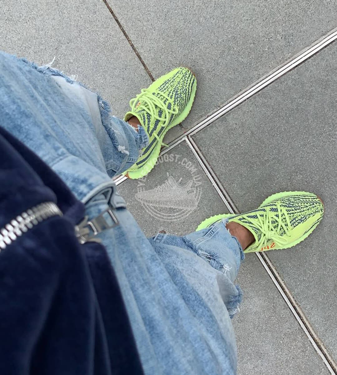 Adidas Yeezy Boost 350 V2 «Semi Frozen Yellow» став дев’ятим кольором в рамках колаборації Adidas x Yeezy у лінійці «SPLY-350». У моделі було два дропи: перший відбувся 18 листопада 2017 року, а другий – 14 грудня 2018 року. Yeezy Boost «Semi Frozen» виконані в яскраво-жовтому відтінку, який поширюється і на шнурівку. Сині смужки, схожі на зебру, додають ще одну дизайнерську ідею разом із жовтою смужкою з написом «SPLY-350» червоного кольору у дзеркальному відображенні. Ззаду, в тон кросівок, розташована петелька для зручного надягання, а підошва виконана в кольорі gum. Кросівки Yeezy Boost 350 V2 «Frozen Yellow» поєднують у собі верх із традиційної тканини Primeknit і напівпрозору жовто-кислотну підошву з амортизацією Boost, яка досі залишається однією з найефективніших в індустрії взуття. Кросівки Yeezy Boost 350 – це неймовірна легкість, відчутний комфорт та максимальна амортизація.