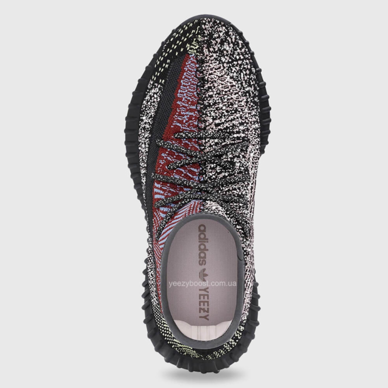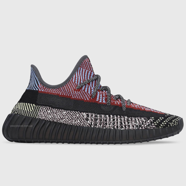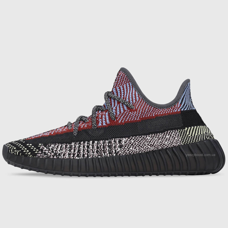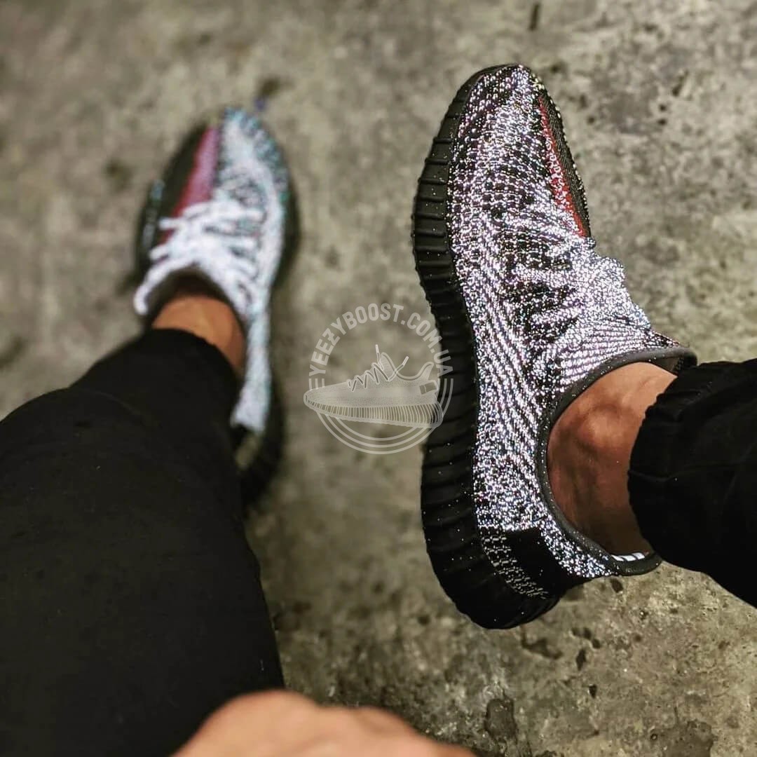 Adidas Yeezy Boost 350 V2 «Yecheil Reflective» були розроблені в рамках колаборації Adidas x Yeezy. Реліз кольору відбувся 19 грудня 2019 року — на день раніше, ніж «Yecheil Non-Reflective». Кросівки пошиті з легкої тканини чорного кольору за технологією Primeknit, яка «розколюється» на різні частини відтінками синього, червоного, бежевого та жовтого. Яскравим доповненням кросівок виступають рефлективні шнурки та світловідбиваючі елементи, які вшиті в Primeknit. Усе це надає ефект світіння при наведенні спалаху. На внутрішній частині задника знаходяться три рефлективні смужки Adidas. У підошві прихована амортизація BOOST, яка досі залишається однією з найефективніших в індустрії взуття. Кросівки Yeezy Boost – це неймовірна легкість, відчутний комфорт та максимальна амортизація.