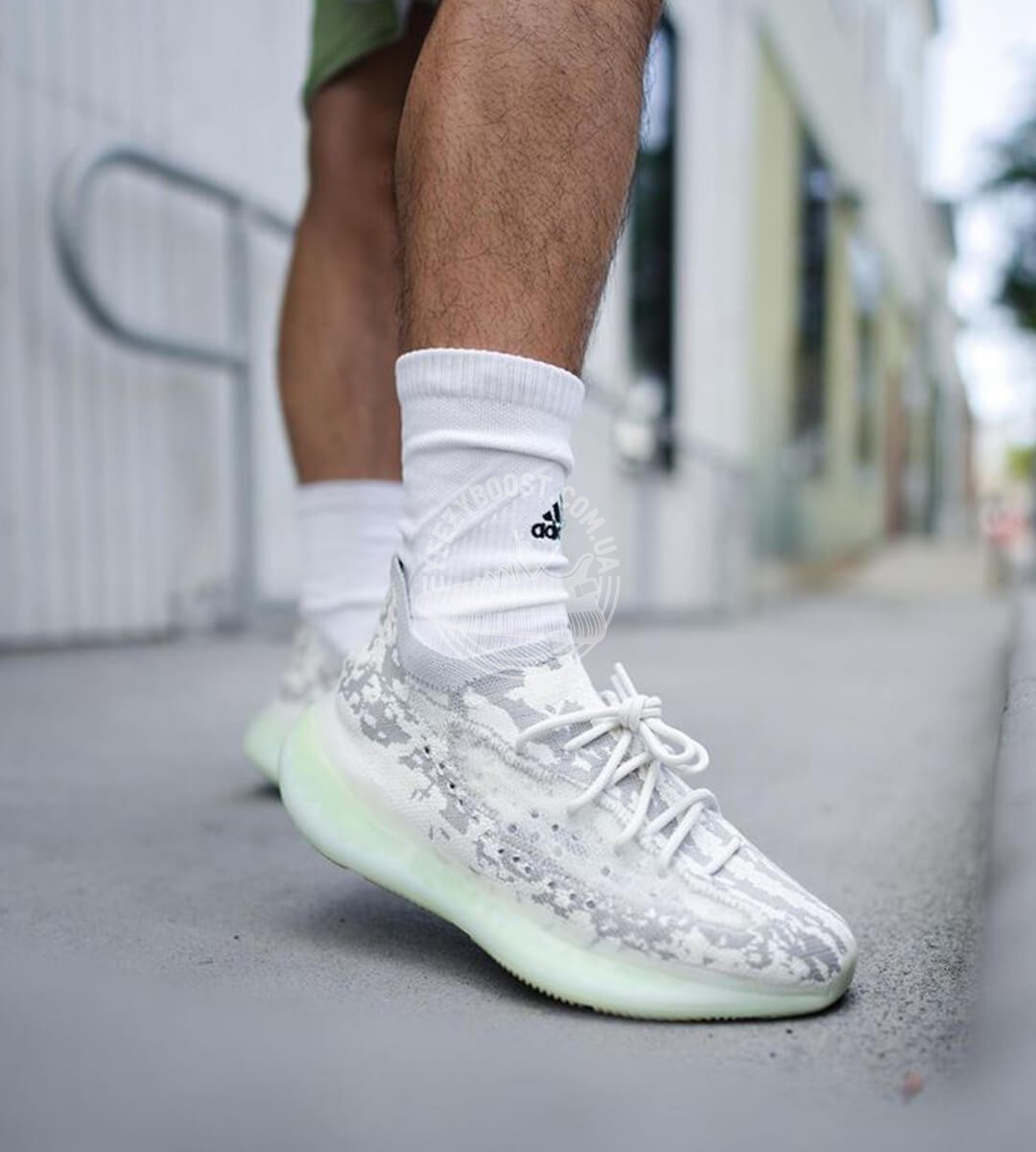 Adidas Yeezy Boost 380 “Alien” – дебютний колір з нової серії Yeezy 380, реліз якого відбувся 16 листопада 2019 року. Усі чекали від бренду Yeezy Boost 350 V3, але вийшли Yeezy Boost 380. Верх кросівок Yeezy 380 виконаний у камуфляжному кольорі з модернізованого матеріалу Primeknit. Зазначимо відносно високий виріз, що обвиває ногу навколо щиколотки, нагадуючи носок. Хорошу вентиляцію забезпечують перфоровані смужки з обох боків кросівка. Напівпрозора висока підошва midsole приховує амортизаційну технологію Boost, яка простягається на всю довжину підошви. Без жодних сумнівів, Yeezy Boost 380 “Alien” – це новий етап в еволюції бренду Каньє Веста.