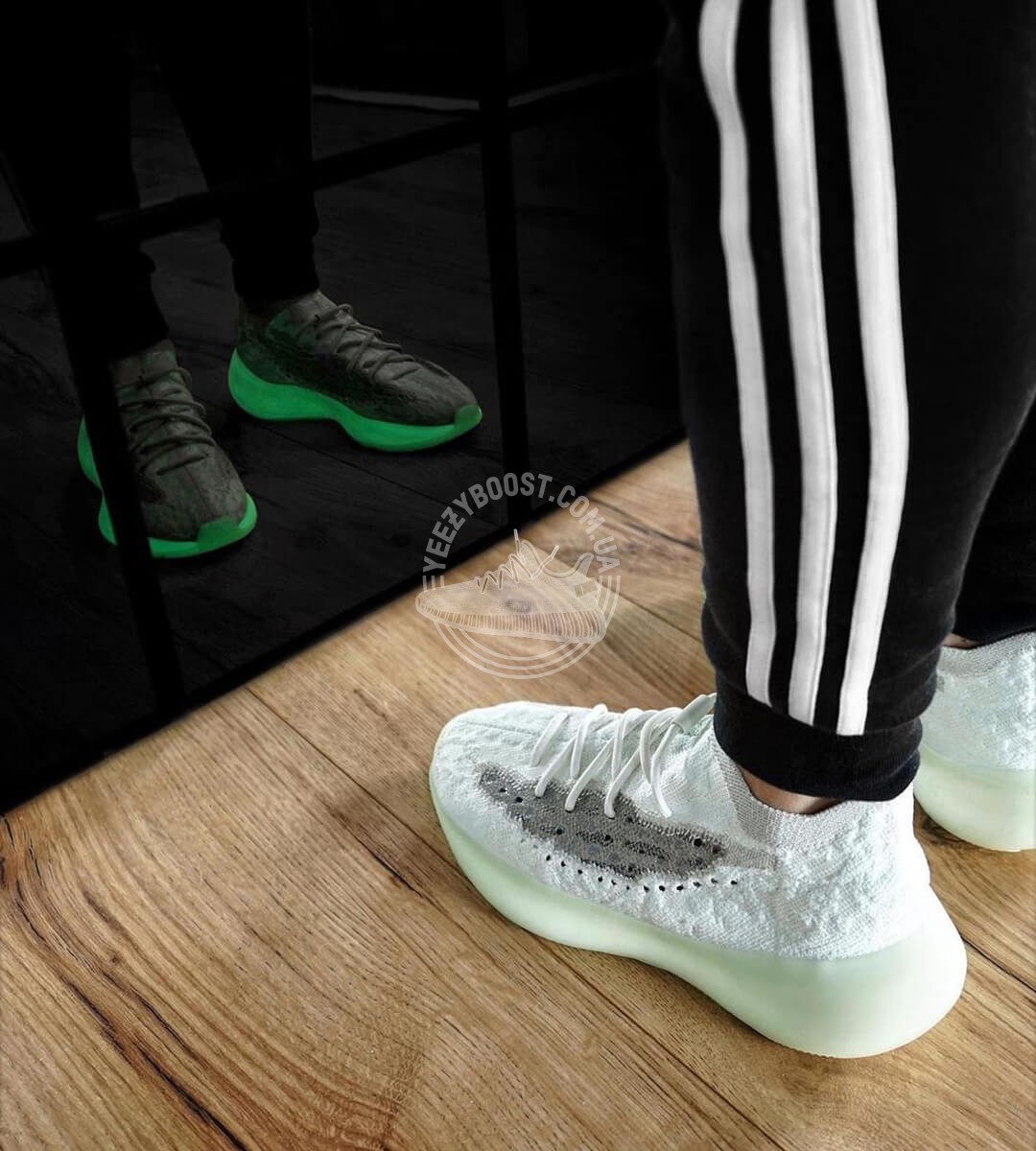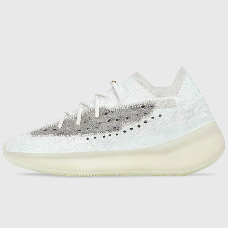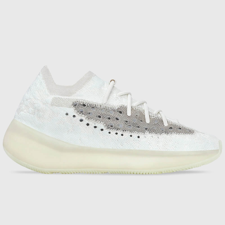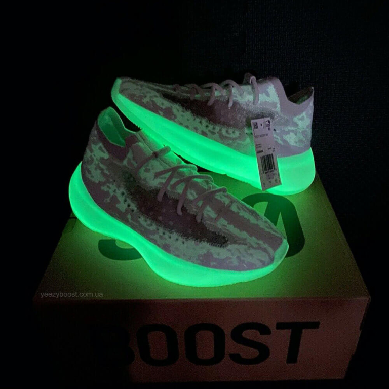 Adidas Yeezy Boost 380 “Calcite Glow” – п’ятий колір з нової серії Yeezy 380 і перший, який отримав технологію “Glow in the Dark”. Реліз відбувся 31 жовтня 2020 року. Колір отримав назву “Calcite” — за назвою мінералу з класу природних карбонатів, який є основою вапна і крейди. Технологія “GID” представлена як у підошві, так і в тканині Primeknit. Верх Yeezy 380 виконаний у камуфляжному кольорі з модернізованого матеріалу Primeknit. Варто відзначити відносно високий виріз, що облягає ногу навколо щиколотки, нагадуючи носок. Зручність при надяганні взуття забезпечують еластичні шнурки без зав’язок. Хорошу вентиляцію створюють перфоровані смужки сірого кольору з обох боків кросівка. Висока напівпрозора підошва приховує амортизаційну технологію Boost. Якщо сподобалася модель з технологією “GID”, радимо також звернути увагу на Yeezy Boost 350 V2 “Glow”.