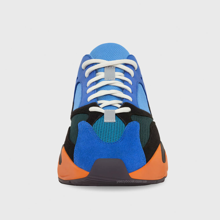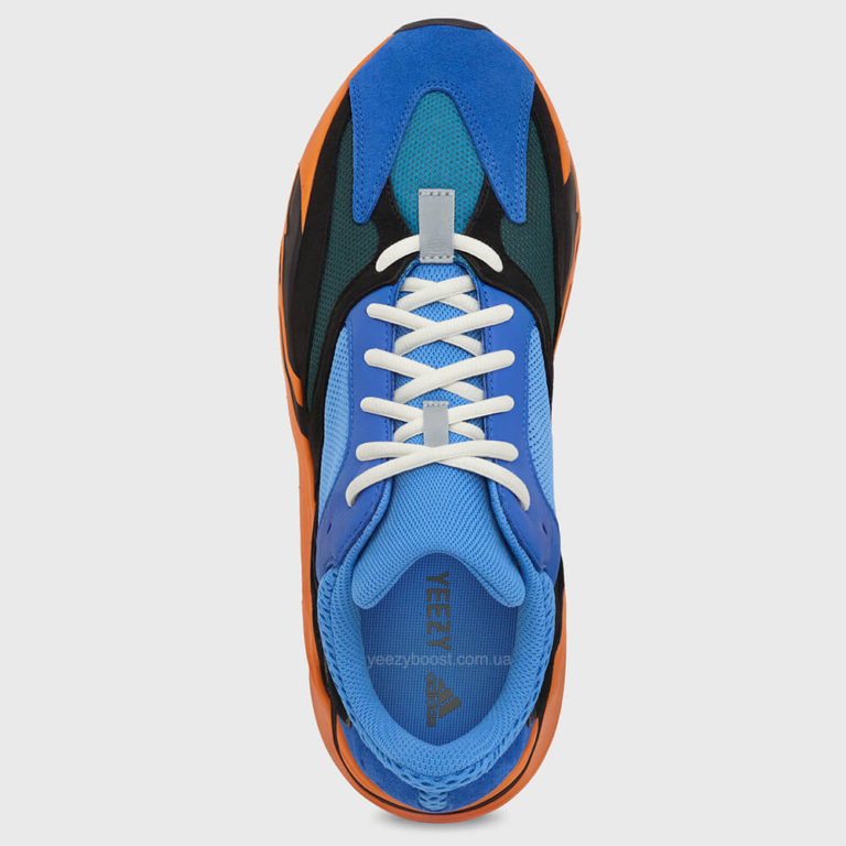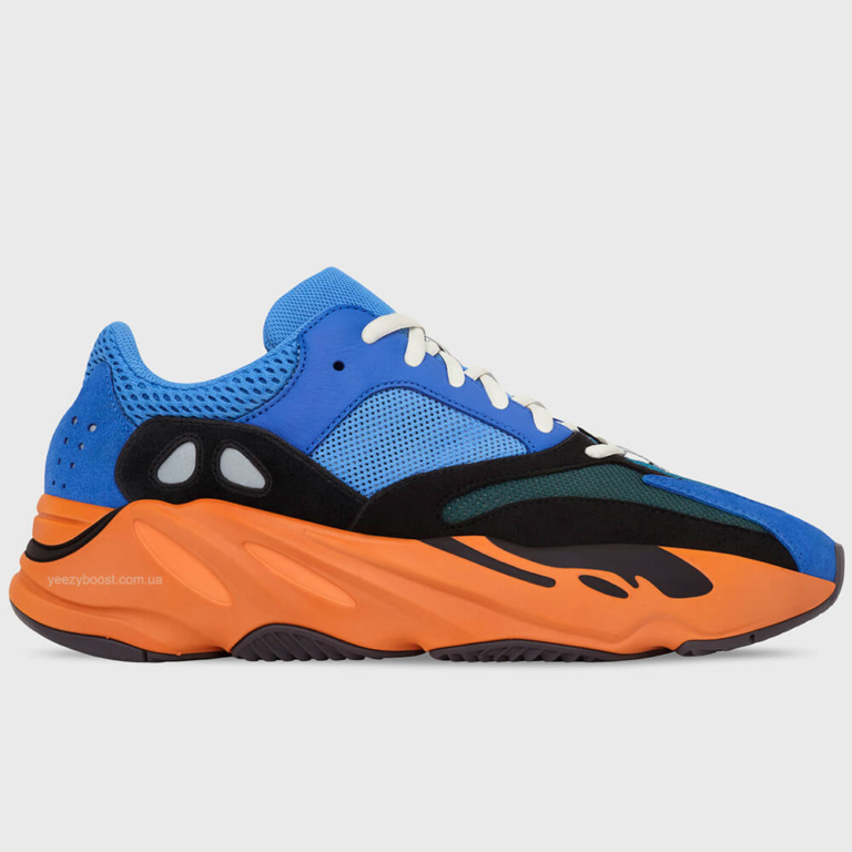 Adidas Yeezy Boost 700 «Bright Blue» були розроблені в рамках колаборації Adidas x Yeezy. Реліз кольорової гами відбувся 24 квітня 2021 року. Кросівки Yeezy Boost 700 «Bright Blue» виконані з преміальної замші синього та чорного кольору, натуральної шкіри та сітки mesh на знайомому силуеті з масивною підошвою оранжевого кольору, в якій прихована амортизаційна технологія Boost. Зовнішній брендинг моделі Yeezy Boost 700 обмежений прихованими трьома рефлективними смужками під зовнішньою сіткою з боків кросівок і логотипом Adidas Performance на гумовій підошві чорного кольору, як і на кольоровій гамі «Sun». Крім того, світловідбиваючі вставки можна знайти і на самих кросівках, які виконані у формі «Cat Eye». Кросівки Adidas Yeezy Boost 700 – це бездоганний рівень комфорту та амортизації в будь-якій ситуації.