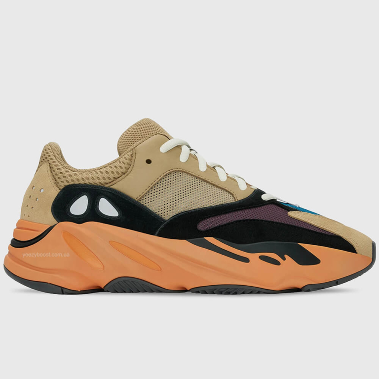 Adidas Yeezy Boost 700 «Enflame Amber» були розроблені в рамках колаборації Adidas x Yeezy. Реліз кольорової гами відбувся 11 червня 2021 року. Кросівки Yeezy Boost 700 «Enflame Amber» виконані з преміальної замші коричневого та чорного кольору, натуральної шкіри та сітки в тон кросівка на знайомому силуеті з масивною підошвою, в якій прихована амортизаційна технологія Boost. Зовнішній брендинг моделі Yeezy Boost 700 обмежений прихованими трьома рефлективними смужками під зовнішньою сіткою з боків кросівок та логотипом Adidas Performance на гумовій підметці чорного кольору. Крім того, світловідбивні вставки можна знайти і на самих кросівках, які виконані у формі «Cat Eye». Кросівки Adidas Yeezy Boost 700 – це бездоганний рівень комфорту та амортизації в будь-якій ситуації.