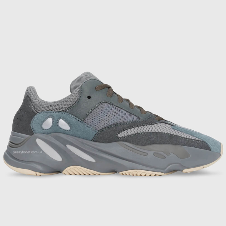 Adidas Yeezy Boost 700 «Teal Blue» були розроблені в рамках колаборації Adidas x Yeezy. Реліз цієї моделі відбувся 26 жовтня 2019 року. Кросівки Yeezy Boost 700 «Teal Blue» виконані з преміальної замші сіро-блакитних відтінків, натуральної шкіри та сітки mesh на знайомому силуеті з масивною підошвою сірого кольору, в якій прихована амортизаційна технологія Boost. Зовнішнє брендування моделі Yeezy Boost 700 обмежене прихованими трьома рефлективними смужками під зовнішньою сіткою з боків кросівок і логотипом Adidas Performance на гумовій підошві. Крім того, світловідбивні вставки можна знайти і на самих кросівках, які виконані у формі «Cat Eye». Кросівки Adidas Yeezy Boost 700 – це бездоганний рівень комфорту та амортизації в будь-якій ситуації.