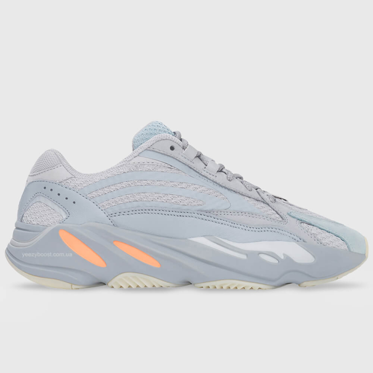 Adidas Yeezy Boost 700 V2 «Inertia» були розроблені в рамках колаборації Adidas x Yeezy. Реліз кольору відбувся 7 вересня 2019 року – на пів року пізніше, ніж перша версія Yeezy Boost 700 «Inertia». Кросівки виконані з преміальної замші блакитного кольору та щільного Primeknit сірого кольору на знайомому силуеті з масивною підошвою, в якій прихована амортизаційна технологія Boost. Зовнішній брендинг моделі Yeezy Boost 700 V2 обмежений трьома рефлективними смужками з боків кросівок і логотипом Adidas Performance на гумовій підошві. Силует Yeezy Boost 700 V2 характерний великою кількістю світловідбивних деталей — шнурки, смужки з боків кросівок, а також вставки на носку і заднику. Кросівки Adidas Yeezy Boost 700 V2 – це бездоганний рівень комфорту та амортизації в будь-якій ситуації.