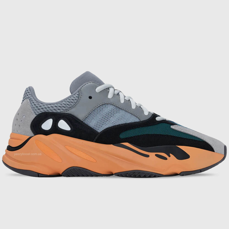 Adidas Yeezy Boost 700 «Wash Orange» були розроблені в рамках колаборації Adidas x Yeezy. Реліз кольорової гами відбувся 16 жовтня 2021 року. Кросівки Yeezy Boost 700 «Wash Orange» виконані з преміальної замші сірого та чорного кольору, натуральної шкіри та сітки mesh в тон кросівка на знайомому силуеті з масивною підошвою оранжевого кольору, в якій прихована амортизаційна технологія Boost. Зовнішній брендинг моделі Yeezy Boost 700 обмежений прихованими трьома рефлективними смужками під зовнішньою сіткою з боків кросівок і логотипом Adidas Performance на гумовій підошві чорного кольору, як і на кольоровій гамі «Enflame Amber». Крім того, світловідбиваючі вставки можна знайти і на самих кросівках, які виконані у формі «Cat Eye». Кросівки Adidas Yeezy Boost 700 – це бездоганний рівень комфорту і амортизації в будь-якій ситуації.