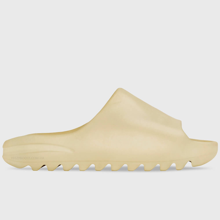 Adidas Yeezy Slide «Desert Sand» були розроблені в рамках колаборації Adidas x Yeezy. Реліз відбувся 6 грудня 2019 року, разом із кольорами «Bone» та «Resin». Незважаючи на те, що шльопанці мають мінімалістичний дизайн, вони не такі прості, як можуть здатися на перший погляд. Тапочки Yeezy Slide виготовляються з м’якої піни EVA, що робить їх легкими та міцними протягом усього часу. Завдяки спеціальним канавкам в області пальців, подушечок і п’ятки, стопа надійно фіксується, а ребриста підошва забезпечує зчеплення на слизьких поверхнях, завдяки чому ви отримуєте максимальний комфорт і захист від ковзання. Зовнішній брендинг обмежений логотипом Adidas Performance на подушечці в області п’ятки та вигравійованим написом YEEZY на внутрішній частині тапочок. Adidas Yeezy Slide – це неймовірна легкість та максимальна амортизація.