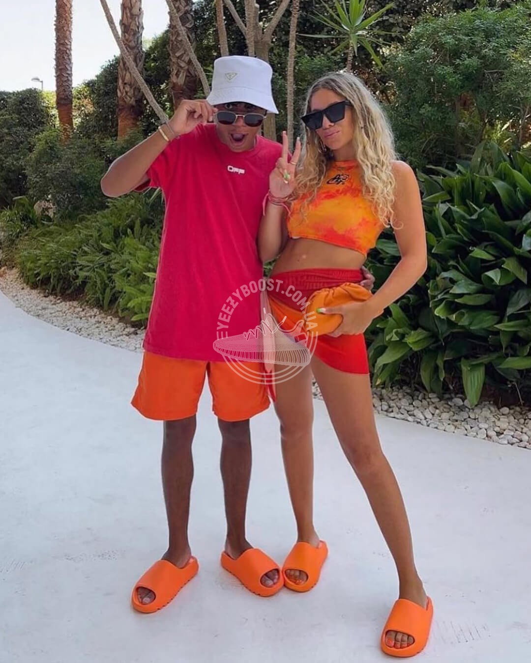 Adidas Yeezy Slide «Enflame Orange» були розроблені в рамках колаборації Adidas x Yeezy. Реліз кольору відбувся 21 червня 2021 року. Окрім кольору «Enflame Orange», одним із найяскравіших і найпомітніших вважається також колір Yeezy Slide «Glow Green». Незважаючи на те, що шльопанці мають мінімалістичний дизайн, вони не такі прості, як можуть здатися на перший погляд. Сланці Yeezy Slide виготовляються з м’якої піни EVA, що робить їх легкими та міцними протягом усього часу. Завдяки спеціальним канавкам в області пальців, подушечок і п’яти, стопа надійно фіксується, а ребриста підошва забезпечує зчеплення на слизьких поверхнях, завдяки чому ви отримуєте максимальний комфорт і захист від ковзання. Зовнішній брендинг обмежений логотипом Adidas Performance на подушечці в області п’яти та вигравіруваним написом YEEZY на внутрішній частині сланців. Adidas Yeezy Slide – це неймовірна легкість та максимальна амортизація.